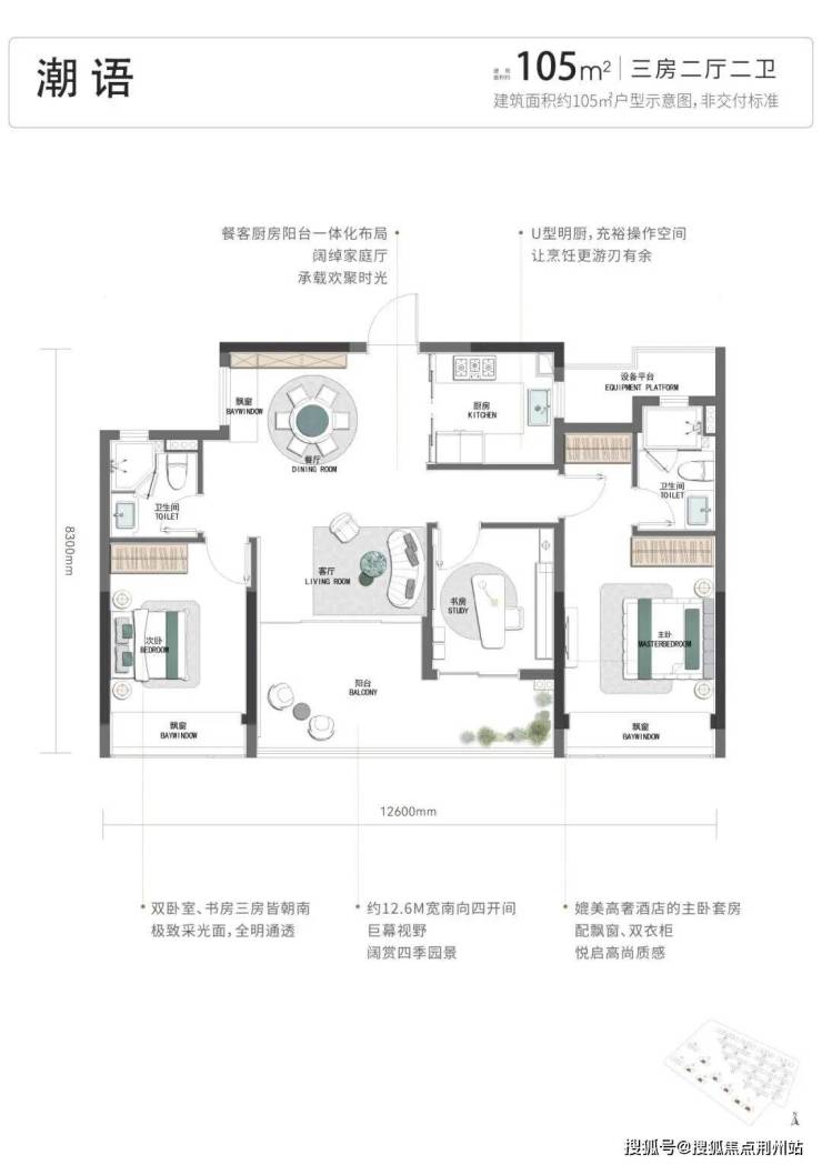 建面约105㎡三房两卫的入门选择,其最大亮点在于做到了四开间朝南 ;建面约130㎡四房两卫改善主力户型,创新打造了270°巨幕边厅;建面约139㎡洋房及253-323㎡排屋定位更高端的改善;排屋产品层高约3.8-4.2米,独门独院,私密性极佳。