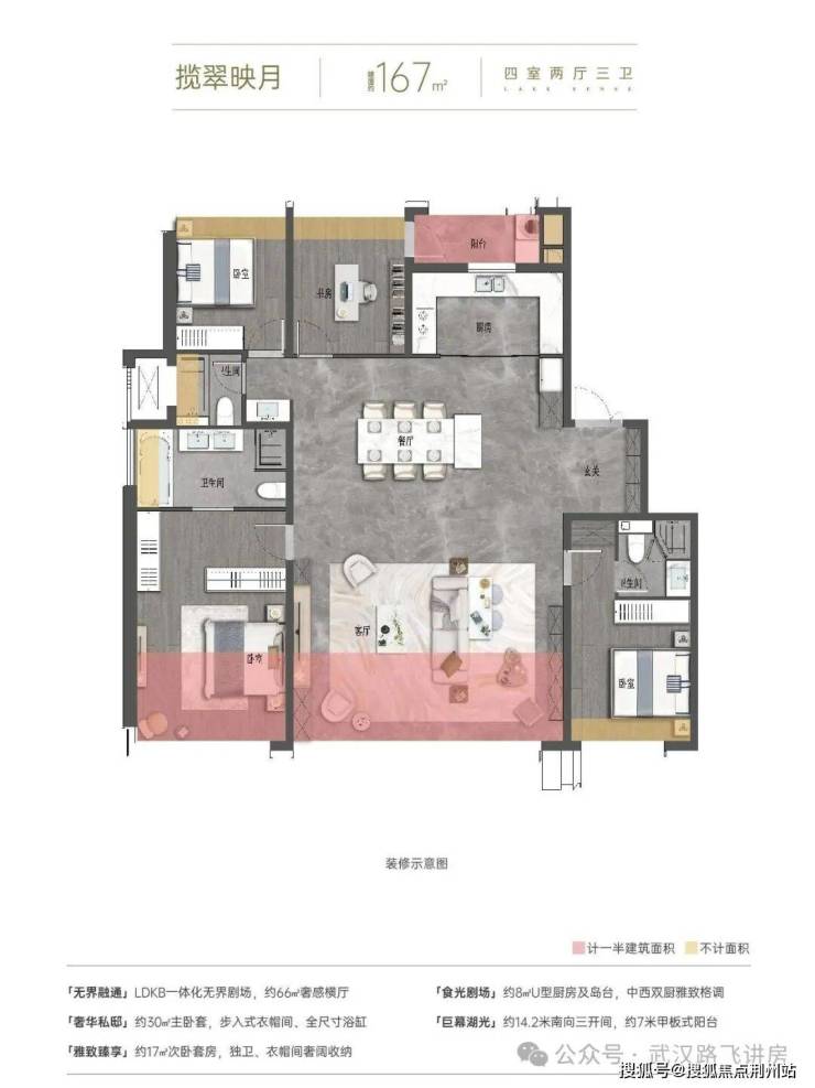 此外洋房包含建面约139平的四房两卫和建面约167平的四房三卫。