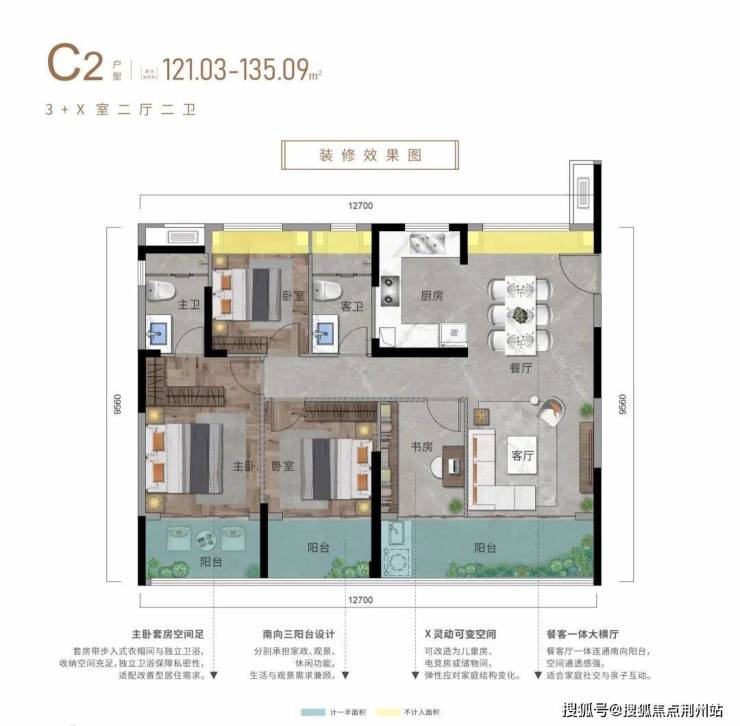C2户型建面约121-135㎡
