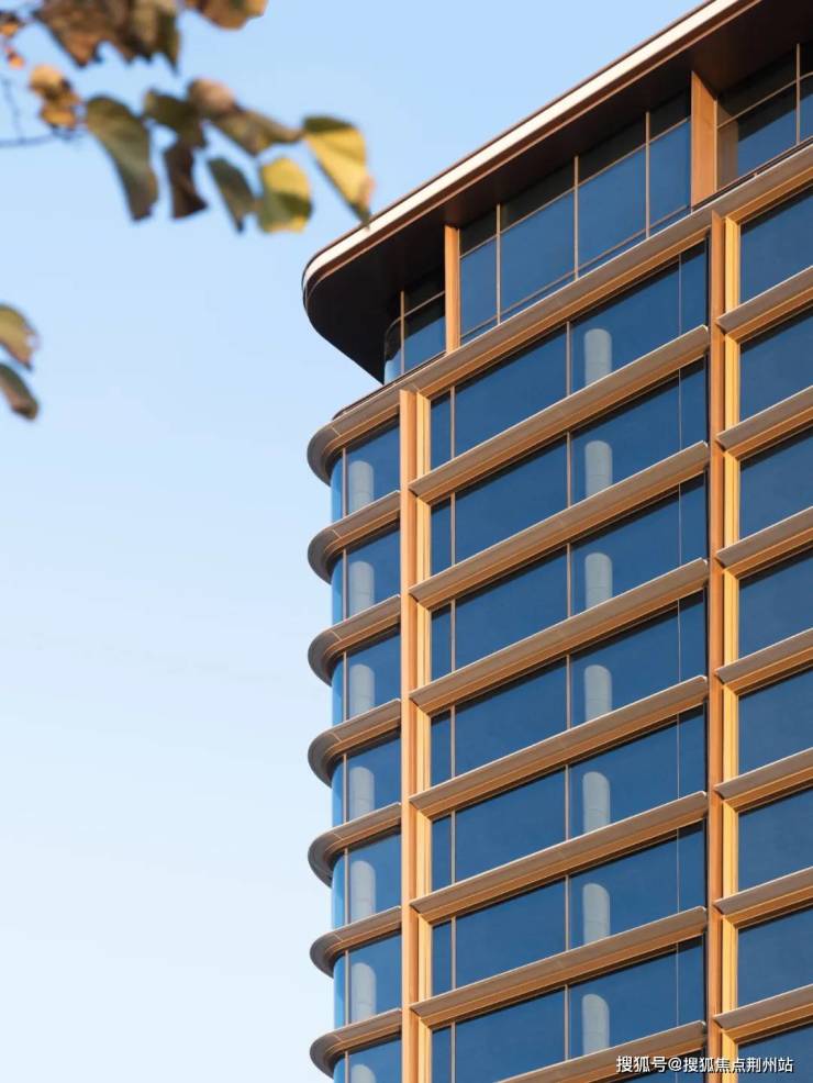古铜色金属线条化作现代幕墙的横向分割线,建筑层高约3.15-3.3米,270度玉幕将城市景色无限包罗。