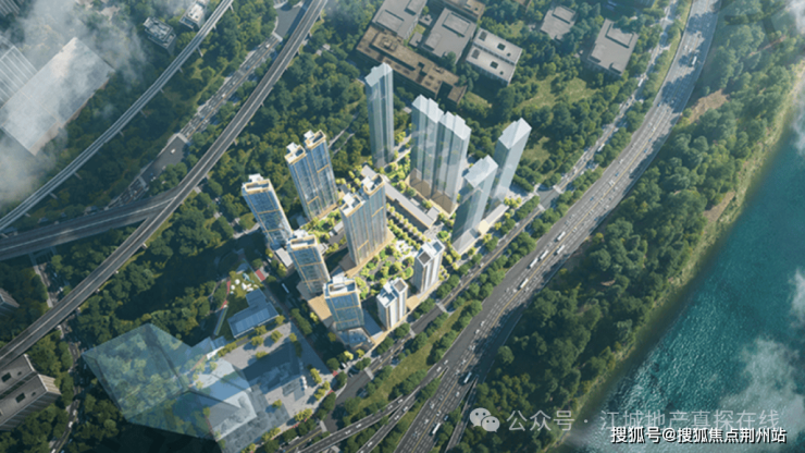 建筑群以“V形折线形布局+前后错位”的方式布置,突破传统楼栋对视限制,让所有住宅楼栋均直面长江奔涌。