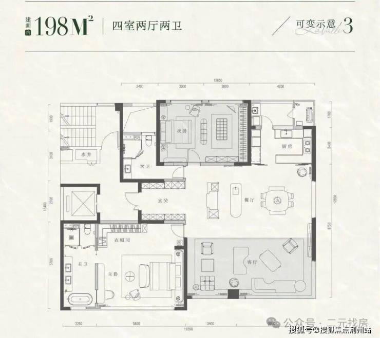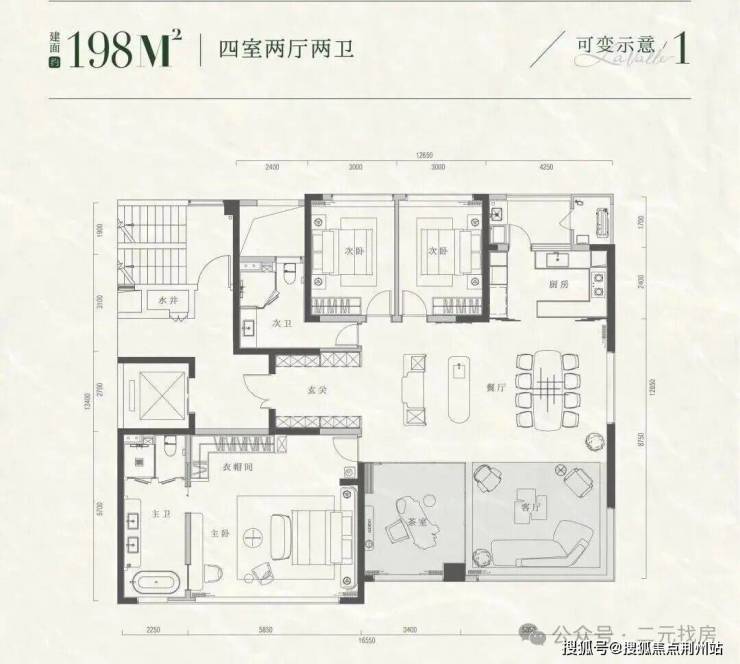 武汉天地云逸一共3个户型,分别为147㎡、175㎡和198㎡。
