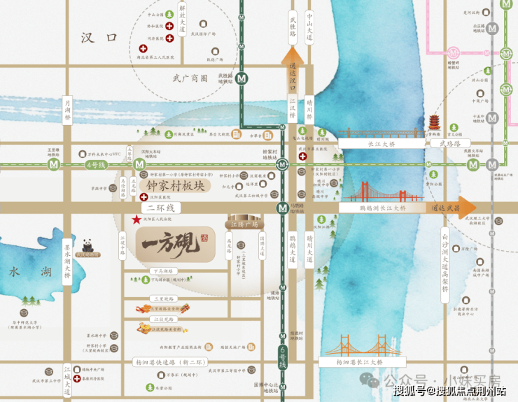 通达全城心: 出门即是二环线,鹦鹉洲、杨泗港两大过江通道在侧。无论是去汉口武广、还是武昌中南,都能实现“转角上二环,通达三镇核心”的便利。
