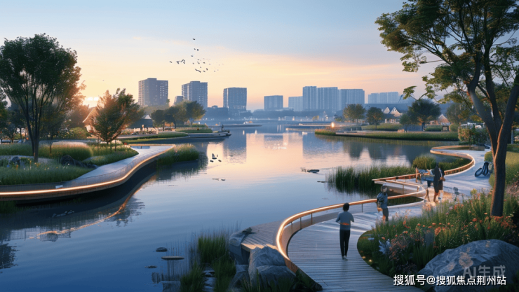项目依托重固镇天然水系资源,打造约1.2公里滨水漫步道,搭配亲水平台与邻里社交花园,形成“家门口的生态绿肺”。晨跑、夜钓、亲子嬉戏等场景均可在此实现,重新定义“水岸生活”的内涵。