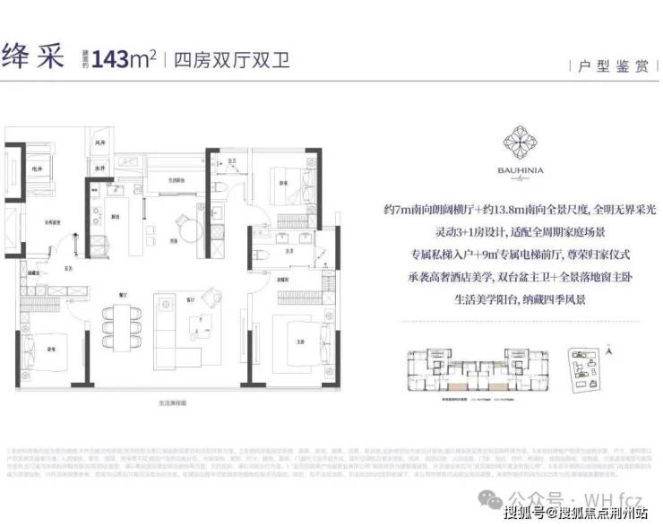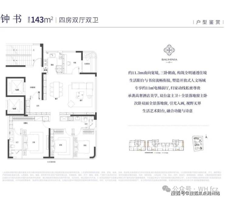·定位为四代住宅,得房率约95%,主力户型143㎡实现三面采光,180㎡户型配备270度观景阳台。