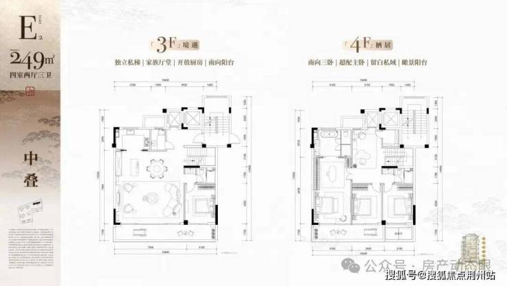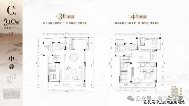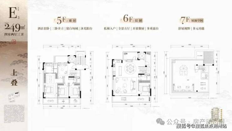 【顶层奢厅】:采用创新上入式设计,打破传统空间格局,将客厅置于顶层,推窗即揽城市天际线与塘河风光。