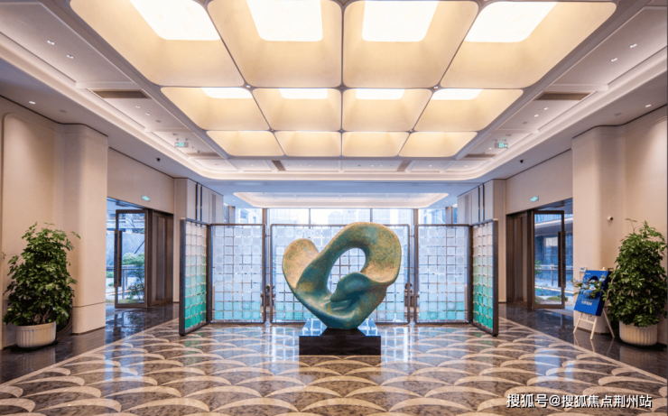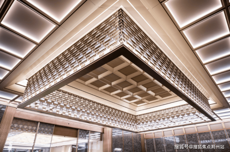 烟台唯一以古典藻井为灵感打造的大门穹顶,400块铝板拼接形成璀璨的光影艺术长廊。
