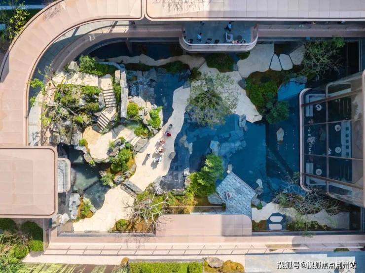 由500吨天然石手工砌筑假山,匠人驻场半月精雕细琢,配以流动水系,再现“清泉石上流”诗画意境,是北方地区难得一见的“山水庭院”景观。