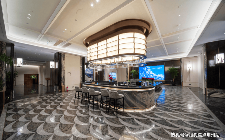 中央水吧台以“丝绸之路”高端深蓝奢石诉说海洋文明,延续海派奢华。