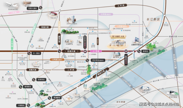 步行范围汇集轻轨1号线、地铁21号线和在建12号线三条地铁,无论是通达汉口核心各大繁华地,还是畅游武汉三镇,都有线路适合你!