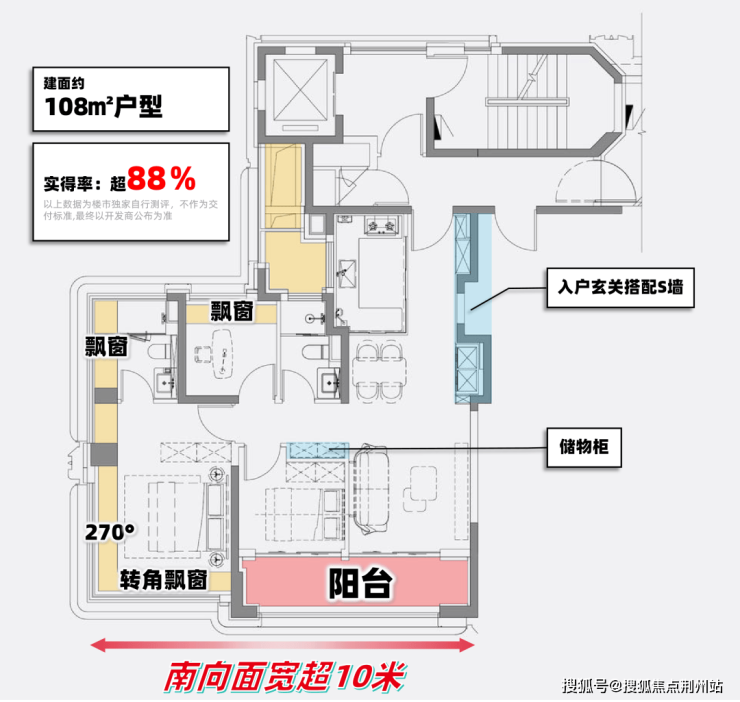 约108㎡边套户型实得率超88%——实际使用感受逼近传统120㎡甚至130㎡。通过一系列新规允许的合理手段,把每一寸都转化为可使用的家庭空间。