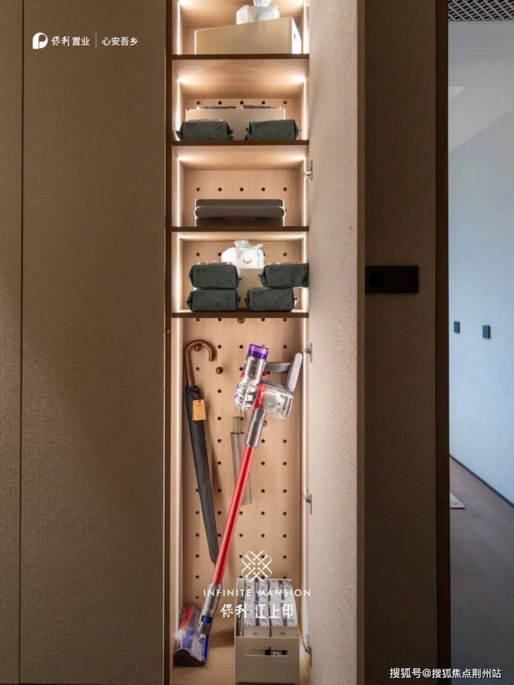 值得一提的是收纳自成体系,全屋收纳围绕进门、餐厨、走廊、卫浴动线展开,让“住得好”从“放得下”、“找得到”东西开始。