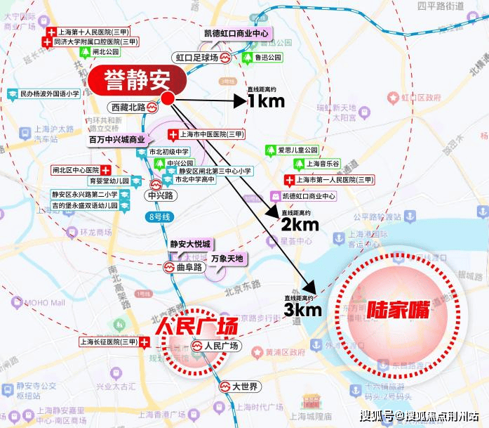 项目坐拥静安内环顶级资源配套:步行约300米至8号线西藏北路站(3站直达人民广场);1公里范围内覆盖华山医院北院、静安区中心医院等三甲医疗资源;商业方面毗邻万象天地、静安大悦城等高端商业体。