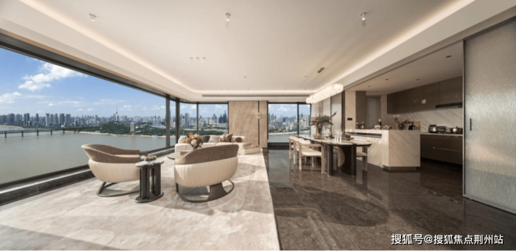 在观江视野上,项目凭借头排优势与精准的建筑布局,实现了“三面观江,南向瞰江”的格局突破。这意味着,无论朝夕,居者皆可从容坐览长江浩荡东去,看舟楫往来、云霞变幻。临窗而望,将黄鹤楼、晴川阁等“长江十景”与对岸璀璨天际线尽收眼底。
