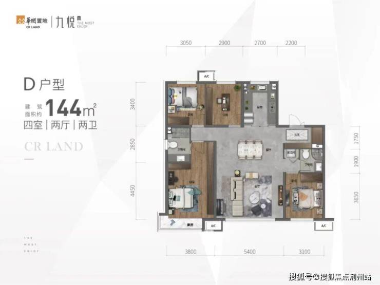 四室两厅两卫,南向为超12.3米的三面宽。全明通透设计,客厅开间达5.4米,主卧室开间3.8米,摆放家具的尺寸恰到好处,业主可以享受到多元化的居住体验,尽享舒适生活。