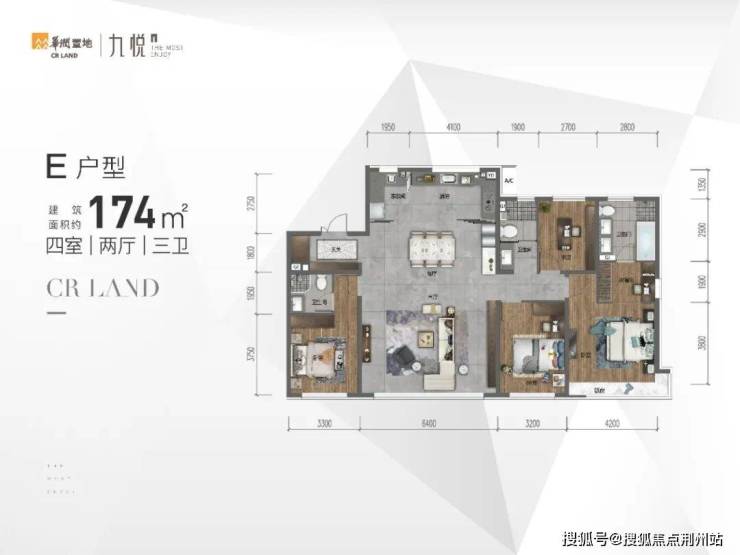 四室两厅三卫,墅级景观大平层户型,南向约17.1米的四面宽,客厅开间6.4米。南向3间卧室,双套房设计,4.2米超大开间主卧室,每个功能都更加宽绰,更显尊贵感,是华润最新改良的的升级力作!