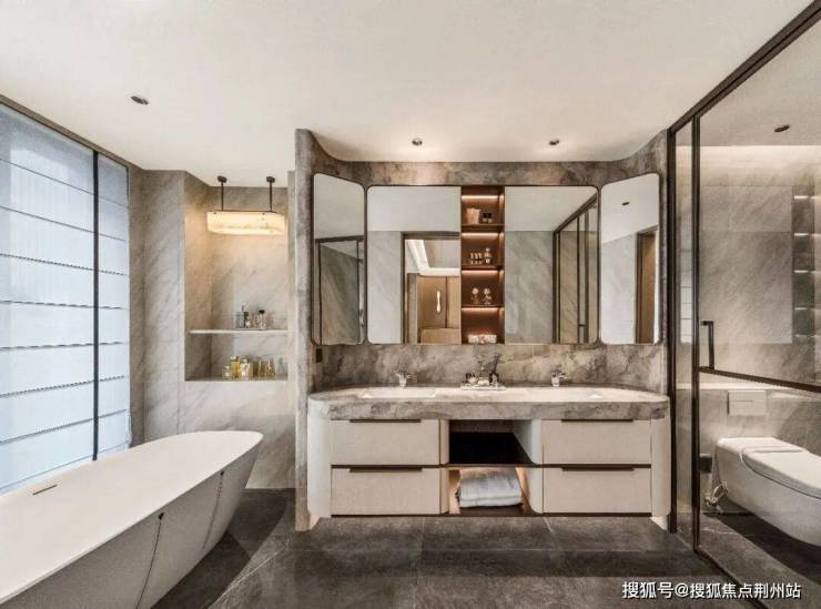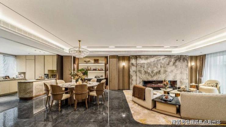 在立面呈现上,甄选臻贵天然石材凸显自然质感,以局部铝板勾勒流畅线条,借鉴苏州织锦工艺灵感,以经纬交错的线条勾勒品质轮廓,以大手笔造价成本,赋予建筑历久弥新的生命力和恒贵质感。通过超大窗墙比设计,将更多窗外风景纳入室内,让建筑不仅仅是居住的容器,更是可触摸、可欣赏的城市级艺术作品。