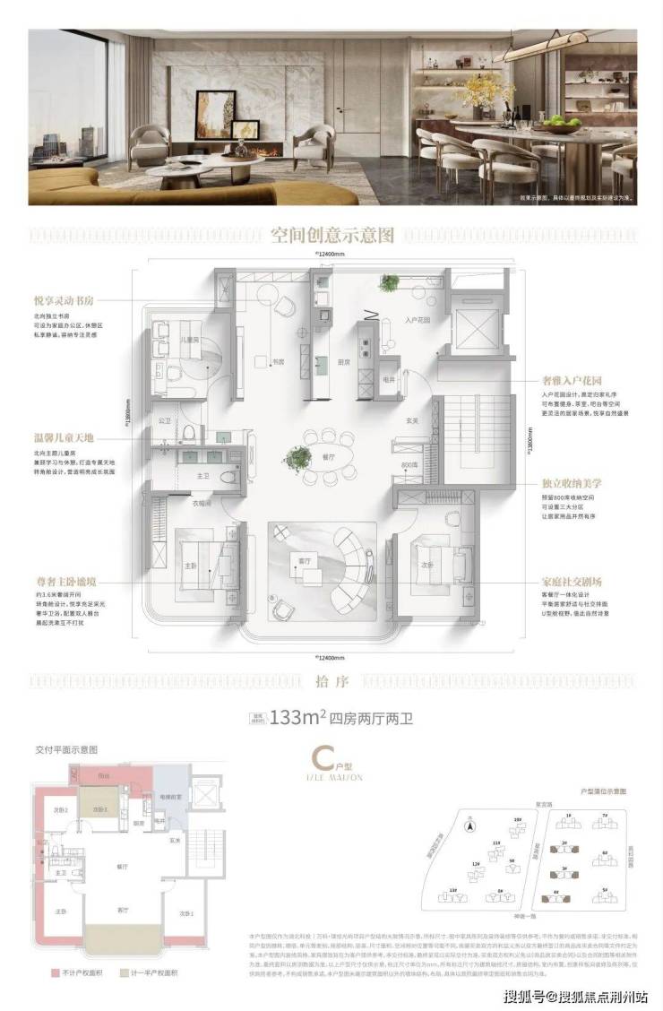 建面约133㎡户型,约110%-120%的使用率精准击中进阶型改善家庭核心诉求。