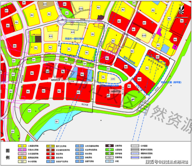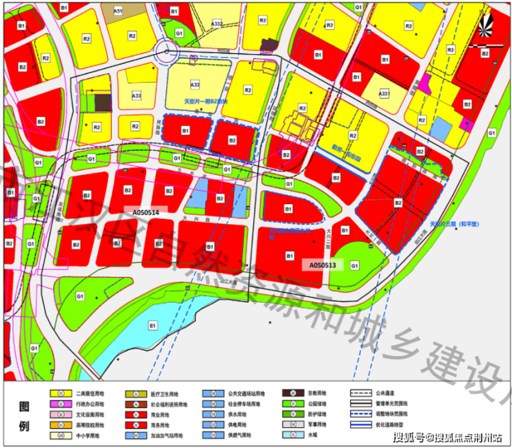 天街片一期B2地块由商业用地、商务用地、公园绿地调整为居住用地、公园绿地;