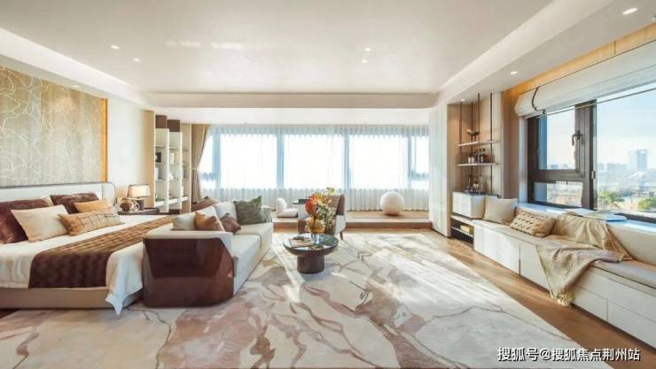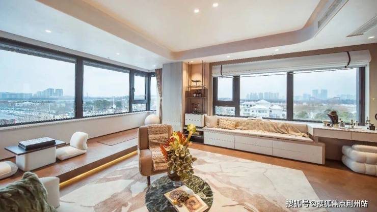 在样板间中,一间南向次卧被改造为客厅的一部分,与阳台连通,形成了一个巨大的会客空间,视野也极其奢阔,真正做到了200㎡以上的居住感受。