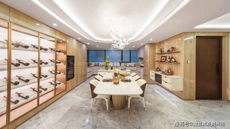 值得一提的是,北向可拓展空间改造后,餐厨空间更加从容,中厨、西厨、岛台、六人餐桌,还有满墙的餐边储物柜,既从容气派,又有充足的储物空间。