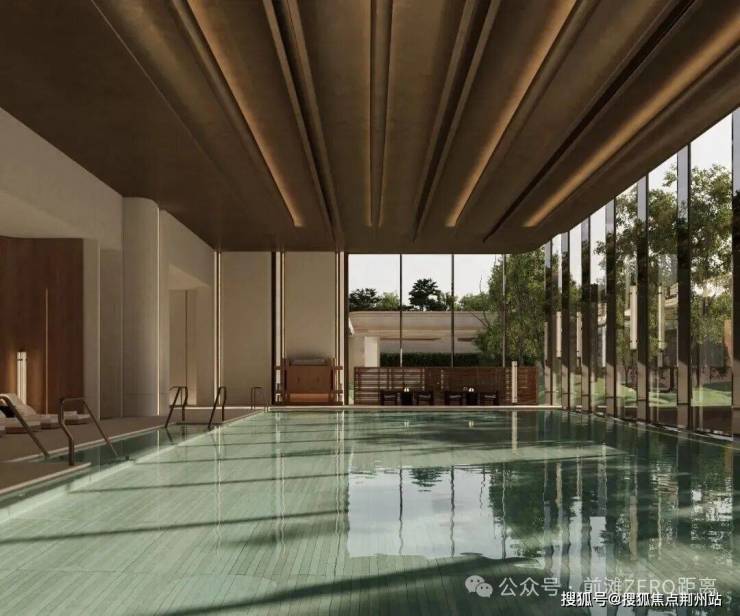 “回归之境”以3500㎡下沉水苑为核心,汇聚会客、泳池、茶室等多功能空间,形成仪式感十足的社区舞台。