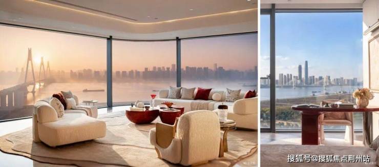 以360°纯粹环幕落地玻璃幕墙体系,搭配横向金属铝板线条造型以天空为幕,塑造长江自然起伏的流动天际线,赋予建筑丰富的动感与生命力。