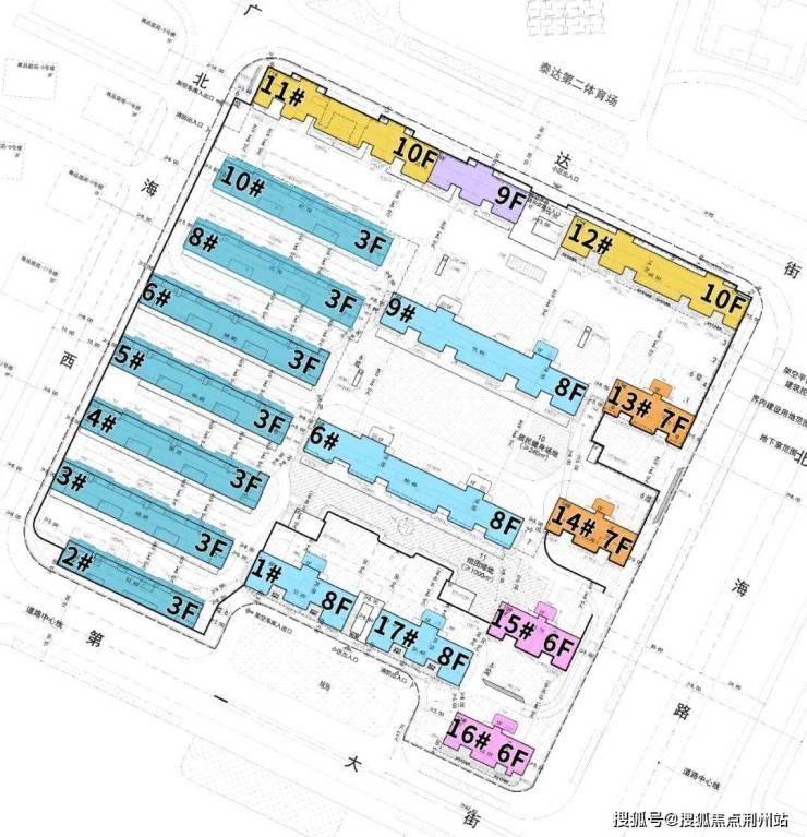 洋房位于地块东北侧,有10栋楼,分别6、7、8、9、10层到顶。
