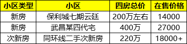 对比同环线四房,保利城七期云廷VS武昌某住宅VS同环线二手次新,我们可以发现: