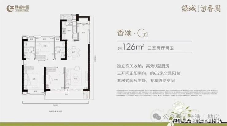 约102-126㎡品质改善产品,全系户型均采用动静分离式设计,一体化餐客厅,跑道式观景阳台,为全龄家人打造舒适生活场。