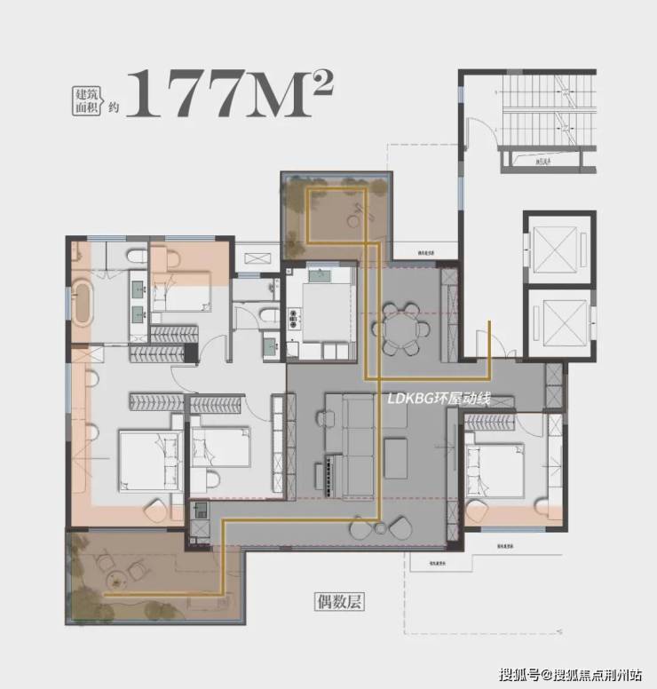 第四代住宅的领先,绝非简单的面积堆砌或参数比拼。以前的户型功能往往是割裂的:客厅是客厅,厨房是厨房,阳台只能晒衣服,一家人虽然在同一个屋檐下,却常常各守一隅。吃饭、看电视成了客厅唯二的功能,除了餐厅,全家人的生活几乎再难形成动态串联,空间再大也显得单调。而中海·天空之镜要做的,就是打破墙体带来的沟通壁垒,用流畅的动线和空间重新定义“家的温度”。以其建面约177㎡户型为例,进化姿态肉眼可见: