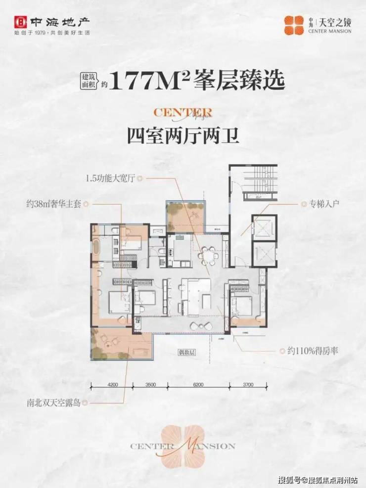 迈进了零/负公摊!实测得房率最高110%传统住宅得房率普遍在80%以下,但中海·天空之镜四代住宅通过露台、阳台、飘窗、餐厅等的赠送/半赠送面积,基本能抵消房子的公摊,得房率达最高可达110%!零/负公摊带来的,可不仅是购房成本的降低,也是一种对豪宅价值的产品力对标。