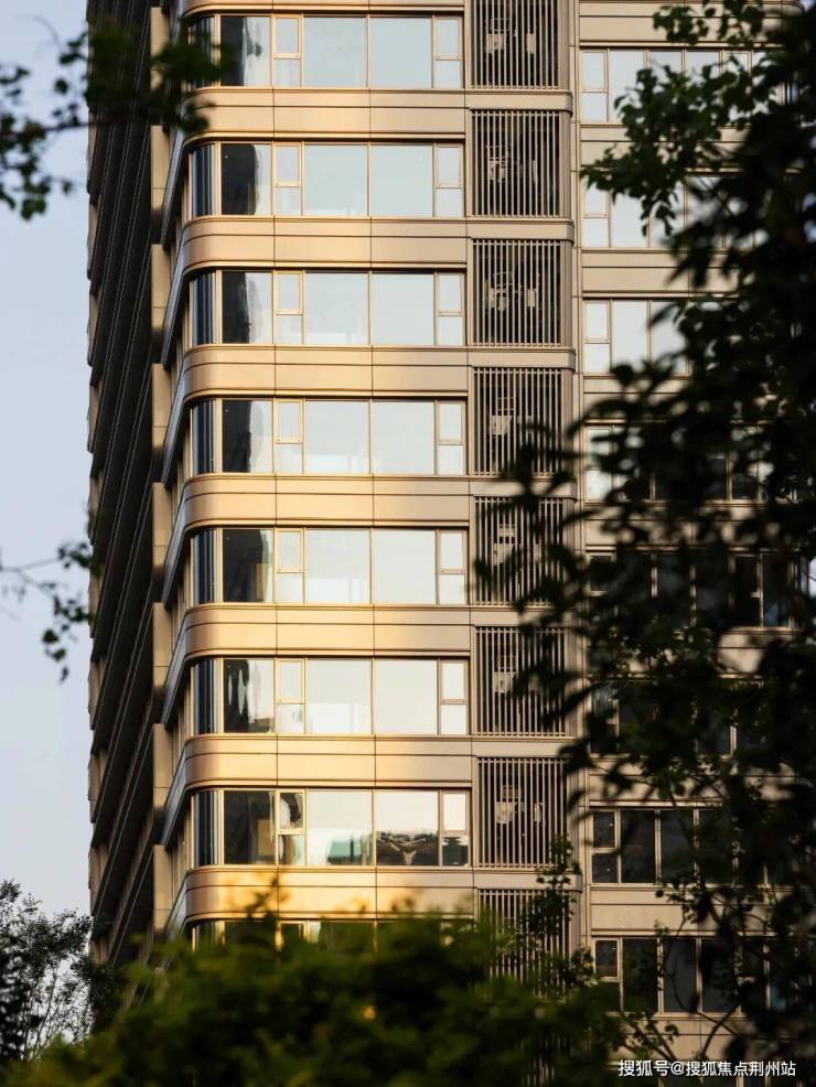 大面积定制玻璃+香槟金色弧形铝板,让建筑显得挺拔、轻盈、有层次,在阳光映衬下,灼灼生辉。