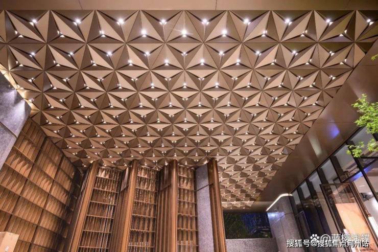 以艺术之名,塑造尊享奢华新境界。社区大堂采用的铝板定制钻石星空顶,由365颗钻石切割拼装而成。