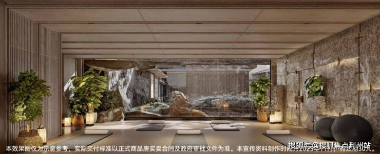 围绕悬浮水院,项目同步打造约400㎡观瀑会所空间,瀑布瑜伽房、庭院健身房、城市会客厅等现代圈层场域一应俱全。