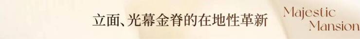 北区人行入口一座宽约60米,高约6米的入户大门,迎面左右各布置3根直径约4.2米的爱马仕灰奢石梭形柱,呈现出最高规格的归家仪式感。大门以奢石为主,以金色立面为主色,即考虑了“土生金”的五行原理,也有“金玉满堂”的寓意。