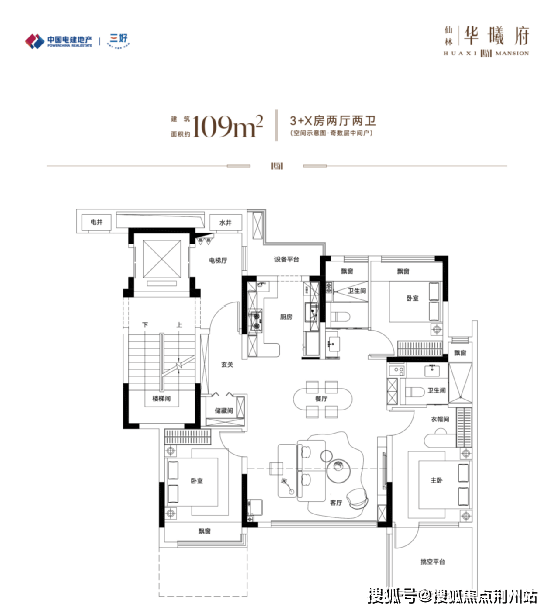 建筑面积约109m²三+X房两厅两卫,全能进阶主场,承载家庭的成长与想象。