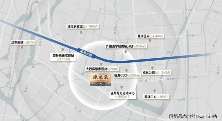 项目往北约500米即是瓯海大道,连接龙湾机场,串联起温州三大行政中心区,毗邻温州高铁南站与温丽高速娄桥收费站,坐拥s1轻轨线、地铁M线(规划)等,繁华世界咫尺可触。