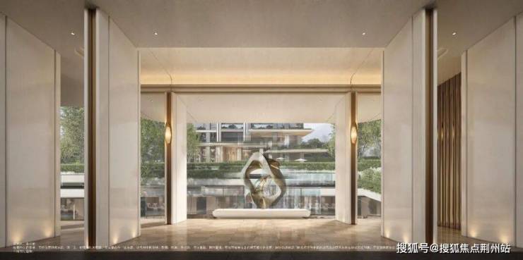 从内江路上的街区花园超级界面开始,层叠岛屿与叠水彰显艺术张力!高约6米、宽约30米的仪式大门,灰白石材搭配弧形曲线,5米落地玻璃门与悬浮大飘檐尽显尊贵。
