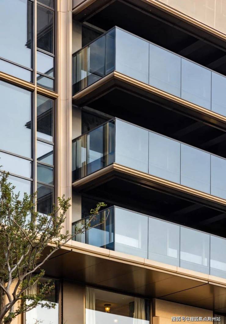 高层住宅以现代手法演绎古典韵味:仿石铝板与精密型材勾勒出简洁的轮廓,竖向线条形成强烈的垂直韵律,阳光洒在墙面上时,会呈现出丰富的光影层次,简约且高级。