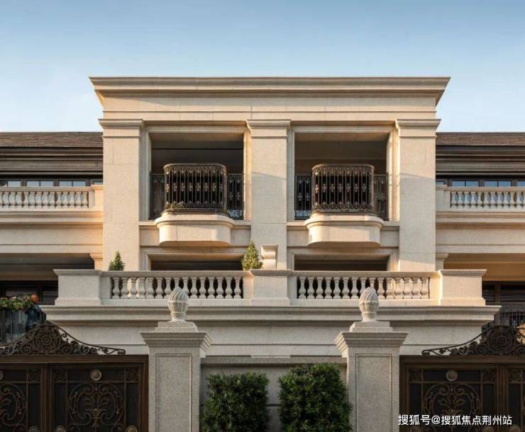 合院是法式风格的纯正表达,屋顶、对称立面、精致浮雕等法式经典元素,复刻着法式建筑的典雅与精致;以都铎玫瑰纹样定制的铁艺、宝瓶栏杆、类塔司干柱、阳台铁艺栏杆等细部设计,造就永恒藏品。