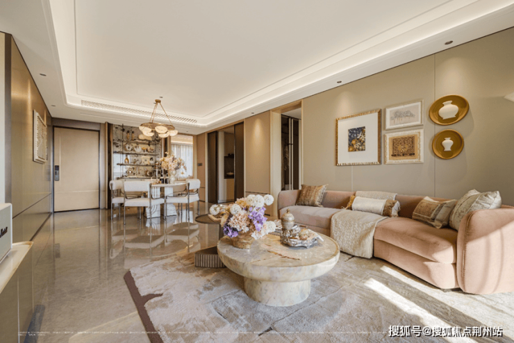 正三面宽朝南格局,搭配观景阳台与全明飘窗,既最大化延伸实用空间,更拓宽观景视野;客餐厅一体化连贯布局,餐桌周边形成流畅洄游动线,告别冗余走道设计,每一寸空间都物尽其用;
