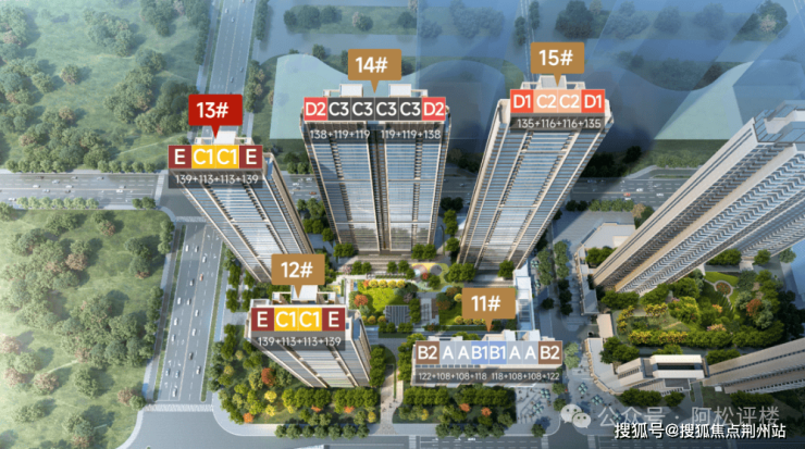项目13号楼共46层,1个单元,3梯4户,边户有独立电梯前室,主推建面约113-139平毛坯房源。