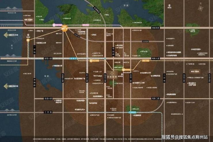 招商原颂坐落于武汉东湖高新区 关山板块核心,佳园路与海纳路交汇处,距武汉东站(地铁 2/11 号线换乘站)仅约 600 米,占据光谷三环内稀缺土地资源。