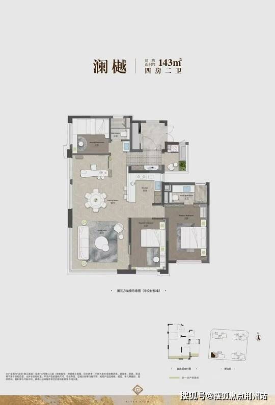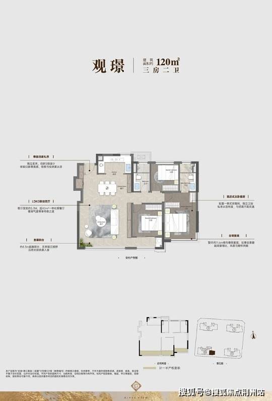 建面约120-143㎡瞰江奢宅,每一处空间都围绕“最大化江景体验”展开。