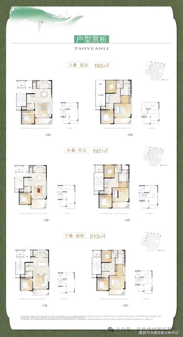 叠墅面积:195-213平
