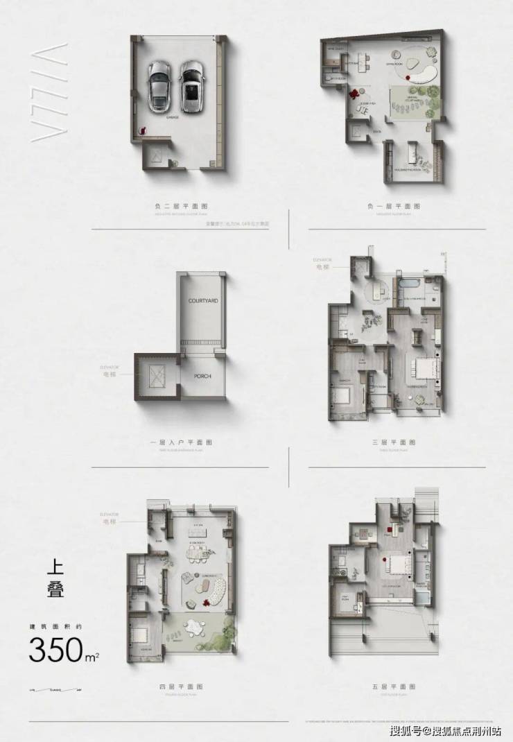 建面约330㎡下叠,共4层,三重入户方式(南北入户,地下二层入户),一层有花园,负一层有挑空庭院,独立车库