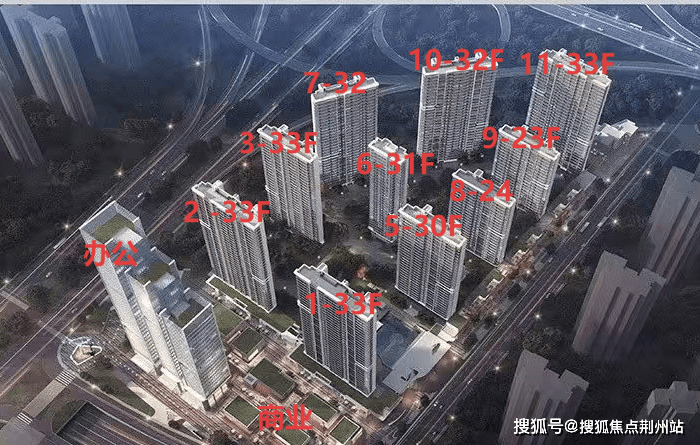 该项目共包含10栋住宅、1栋三连式的办公楼和部分商业街区以及一所幼儿园。该项目都是高层,其中1、2、3、11号楼为33层,7、10号楼为32层,6号楼共31层,5号楼共30层,8号楼24层,9号楼23层。