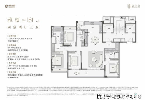 园林方面绿城·沁百合以百合为灵感,打造了“一芯一轴双环”的景观布局,呈现了立体流动的百合花园。