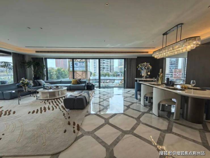 至于地面的大理石拼花、客厅背景墙的奢石、「满装」的厨房电器、以及现成的衣柜等,肉眼可见的硬装,都是交付标准。